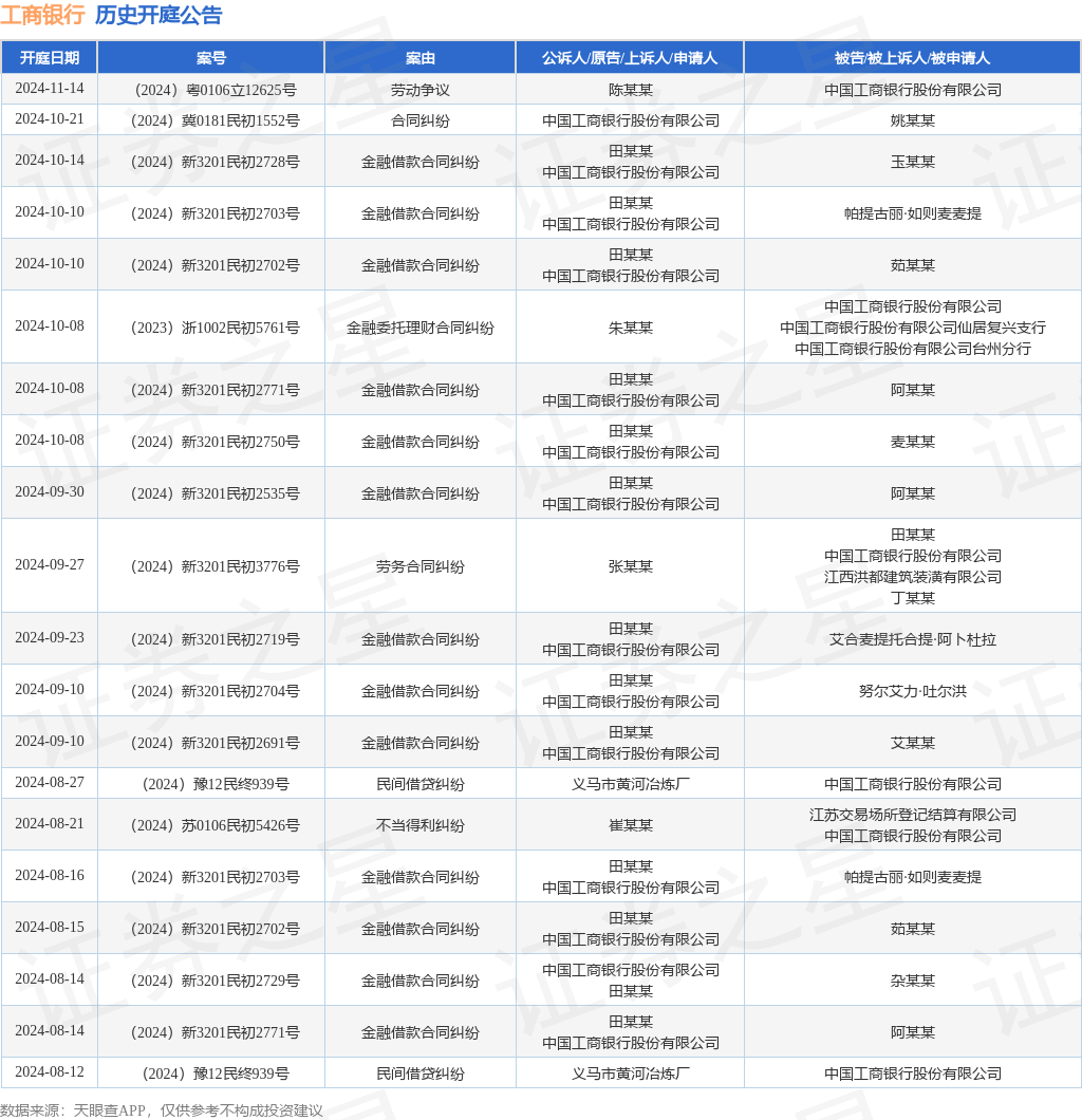 本站消息,根据天眼查APP显示,近日公布了一则中国工商银行股份有限公司作为被告/被上诉人的开庭公告,详细内容如下: