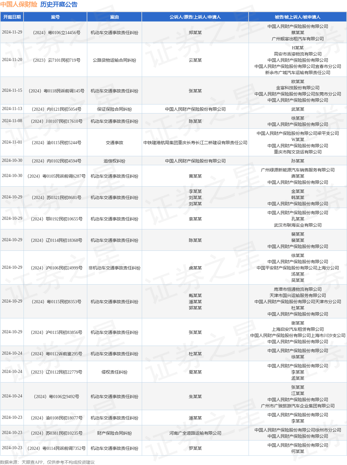 本站消息,根据天眼查APP显示,近日公布了一则中国人民财产保险股份有限公司作为被告/被上诉人的开庭公告,详细内容如下: